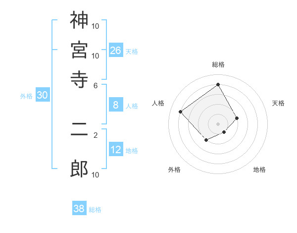 神宮寺 二郎さんの総格は38画の4点!