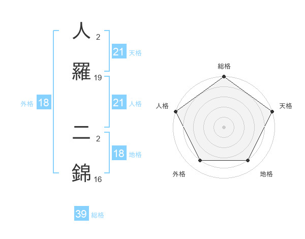 人羅 二錦さんの総格は39画の5点!