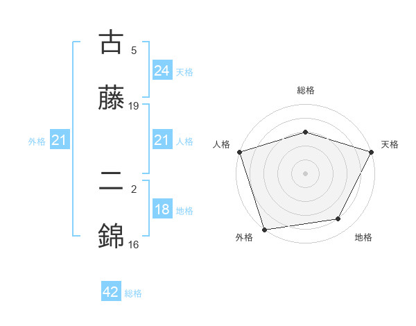 古藤 二錦さんを姓名の画数から五運を鑑定