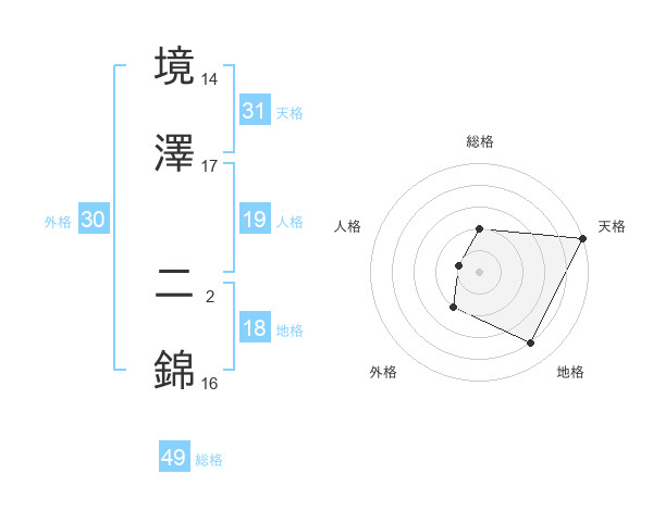 境澤 二錦さんを姓名の画数から五運を鑑定