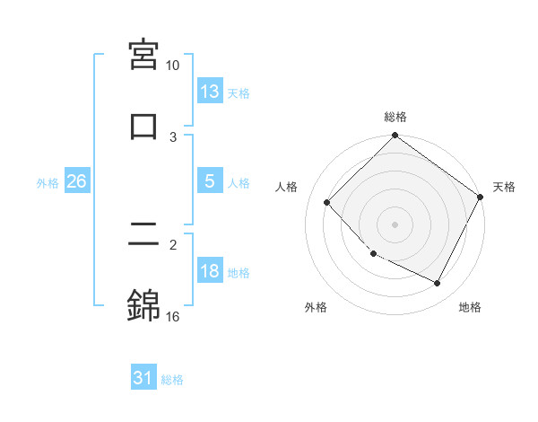 宮口 二錦さんの総格は31画の5点!