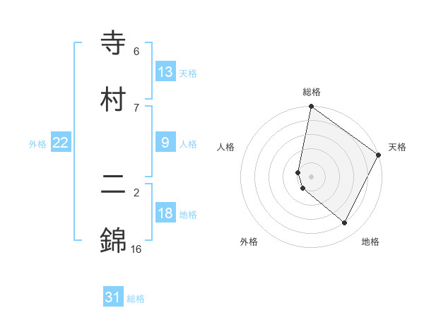 寺村 二錦さんの総格は31画の5点!