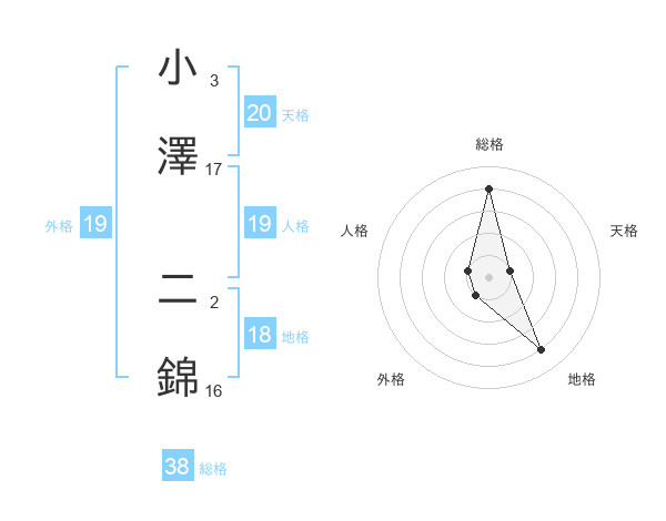 小澤 二錦さんの総格は38画の4点!