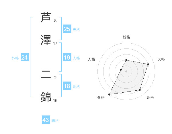 芦澤 二錦さんの総格は43画の2点!