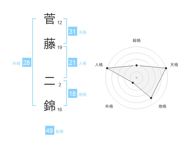 菅藤 二錦さんの総格は49画の2点!