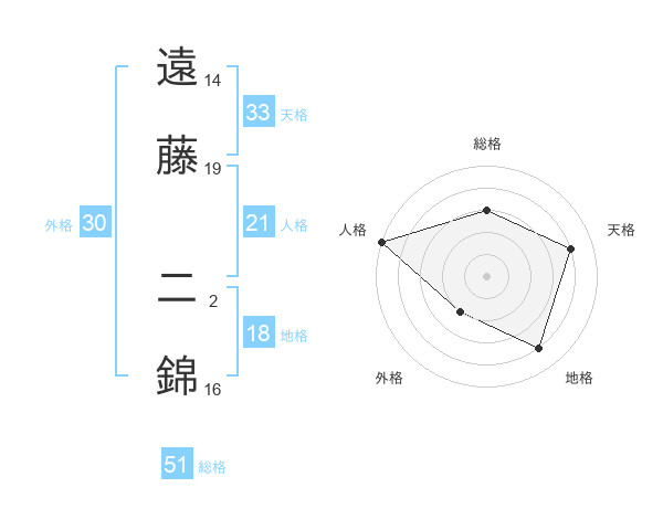 遠藤 二錦さんの総格は51画の3点!