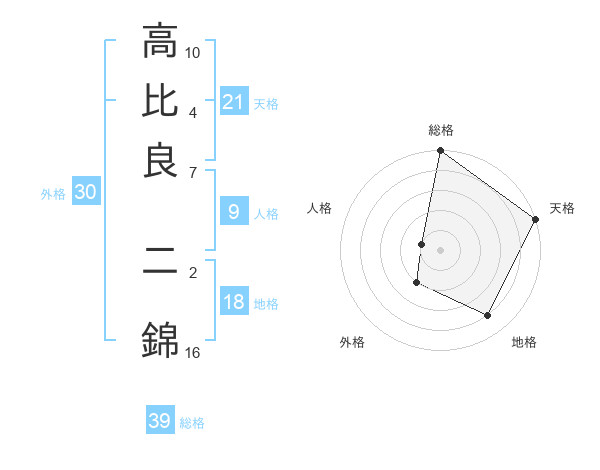 高比良 二錦さんの総格は39画の5点!