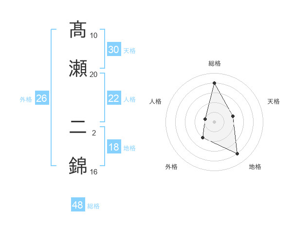 髙瀬 二錦さんを姓名の画数から五運を鑑定