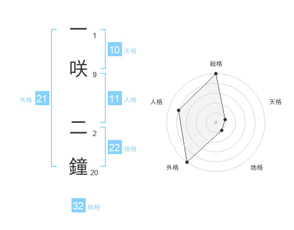 一咲 二鐘さんを姓名の画数から五運を鑑定