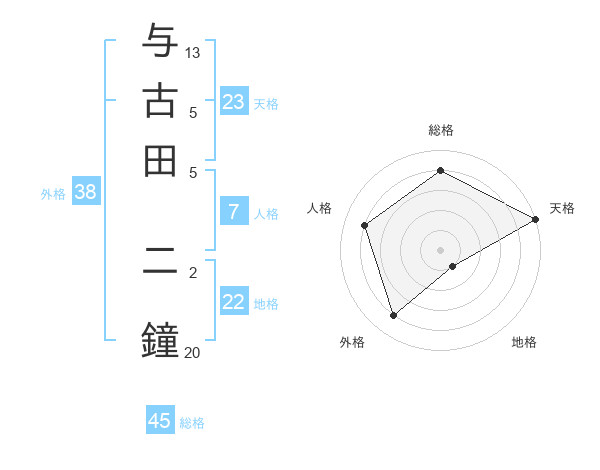 与古田 二鐘さんの総格は45画の4点