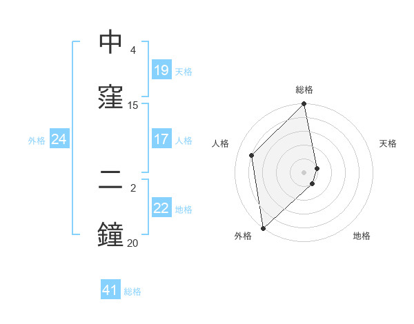 中窪 二鐘さんを姓名の画数から五運を鑑定
