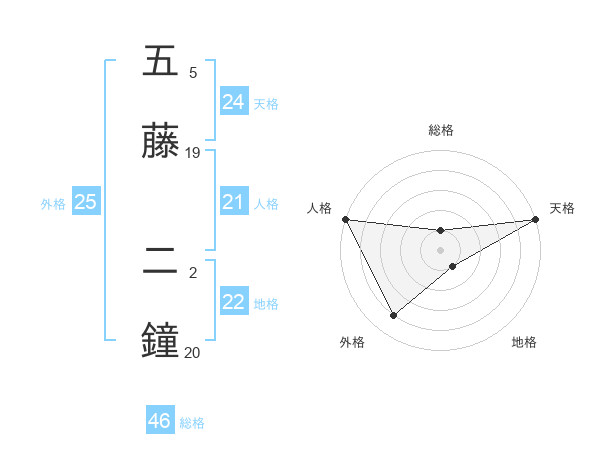 五藤 二鐘さんを姓名の画数から五運を鑑定