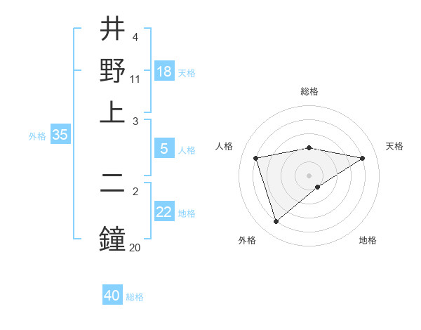 井野上 二鐘さんの総格は40画の2点