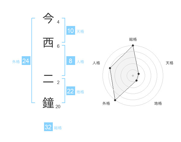 今西 二鐘さんの外格は24画の5点