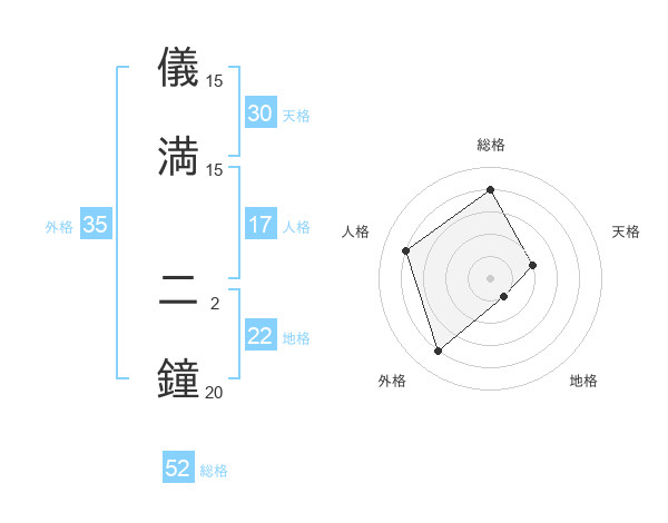儀満 二鐘さんの総格は52画の4点!