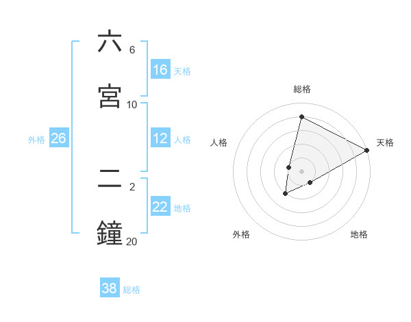 六宮 二鐘さんを姓名の画数から五運を鑑定