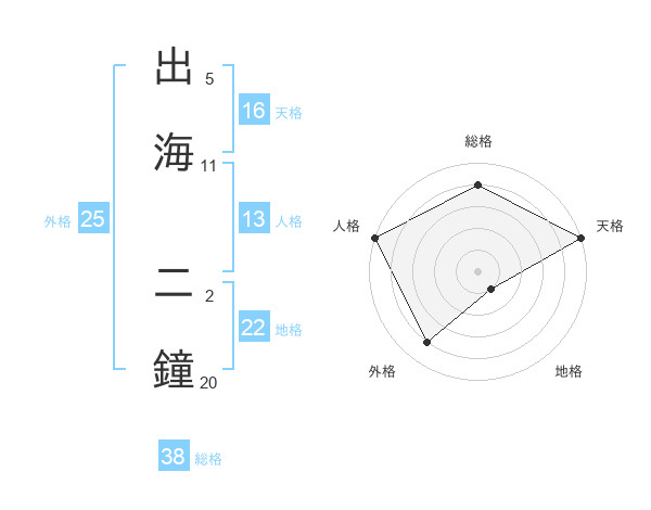 出海 二鐘さんの総格は38画の4点!