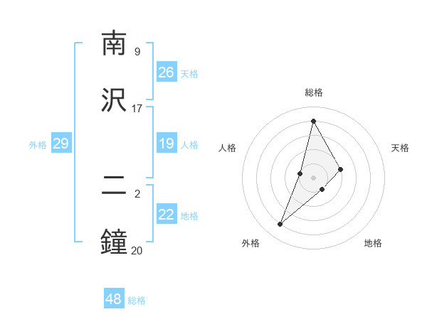 南沢 二鐘さんの総格は48画の4点!