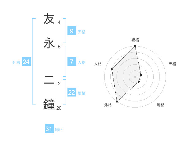 友永 二鐘さんを姓名の画数から五運を鑑定