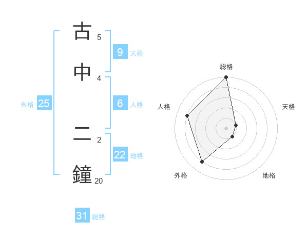 古中 二鐘さんを姓名の画数から五運を鑑定