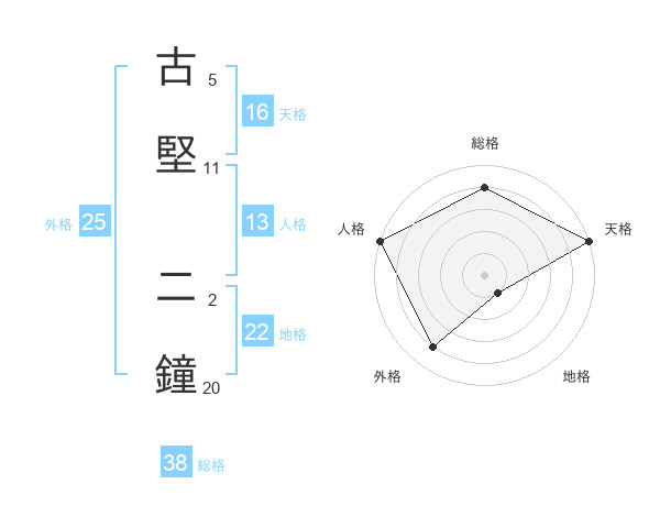 古堅 二鐘さんの総格は38画の4点!