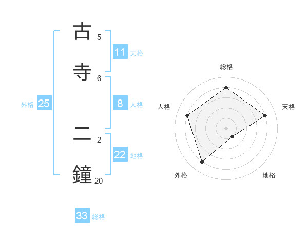 古寺 二鐘さんを姓名の画数から五運を鑑定