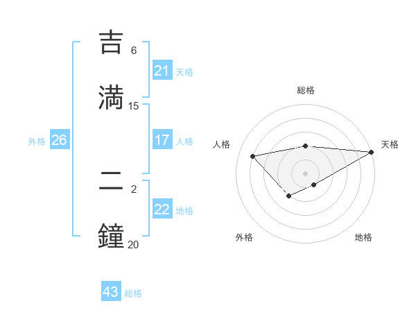 吉満 二鐘さんを姓名の画数から五運を鑑定