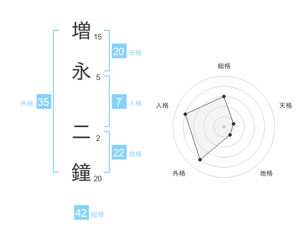 増永 二鐘さんの天格は20画の1点!