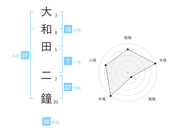 大和田 二鐘さんを姓名の画数から五運を鑑定