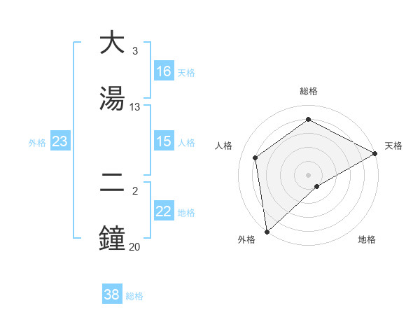 大湯 二鐘さんを姓名の画数から五運を鑑定