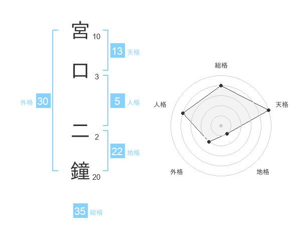 宮口 二鐘さんの総格は35画の4点!