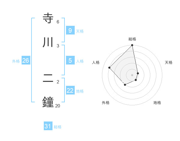 寺川 二鐘さんの総格は31画の5点!
