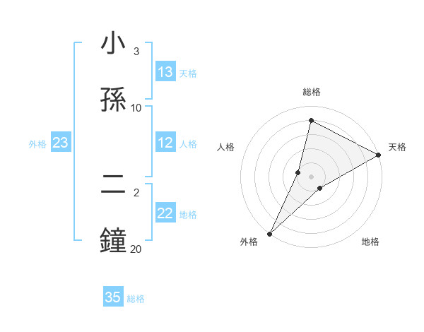 小孫 二鐘さんの外格は23画の5点!