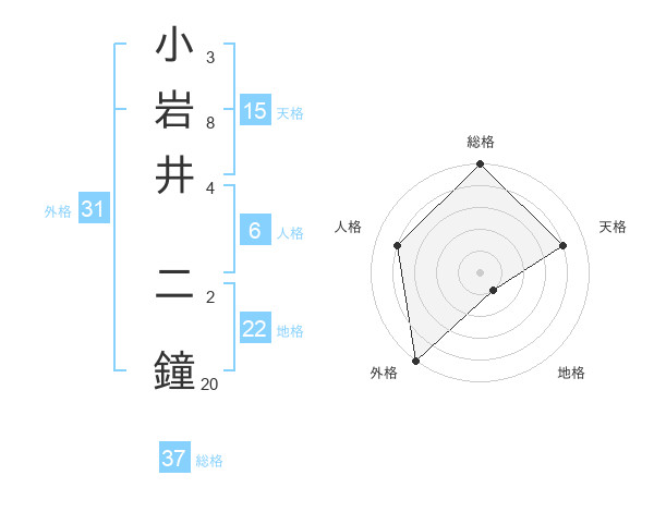 小岩井 二鐘さんを姓名の画数から五運を鑑定