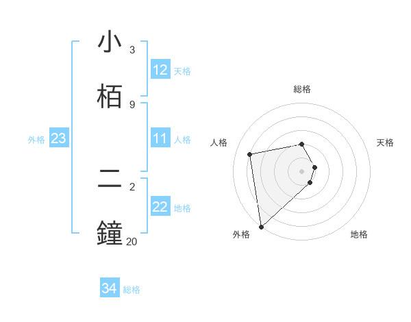 小栢 二鐘さんを姓名の画数から五運を鑑定