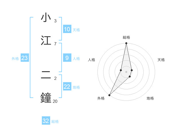 小江 二鐘さんを姓名の画数から五運を鑑定