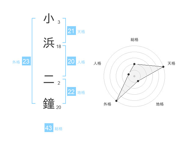 小浜 二鐘さんの外格は23画の5点!