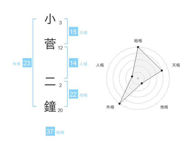 小菅 二鐘さんの外格は23画の5点!