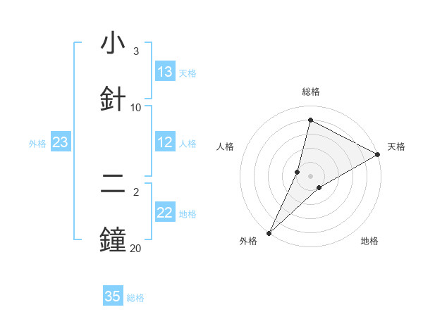小針 二鐘さんの総格は35画の4点!