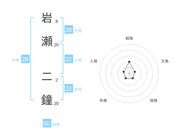 岩瀬 二鐘さんの総格は50画の2点!