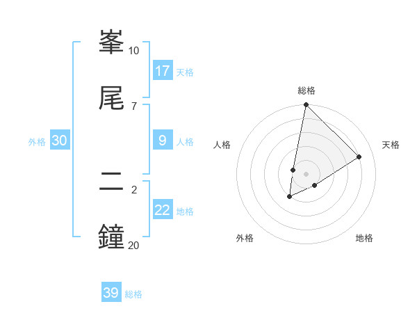 峯尾 二鐘さんの総格は39画の5点!