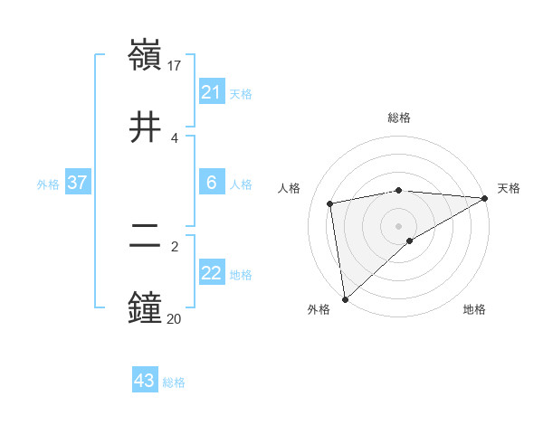 嶺井 二鐘さんを姓名の画数から五運を鑑定