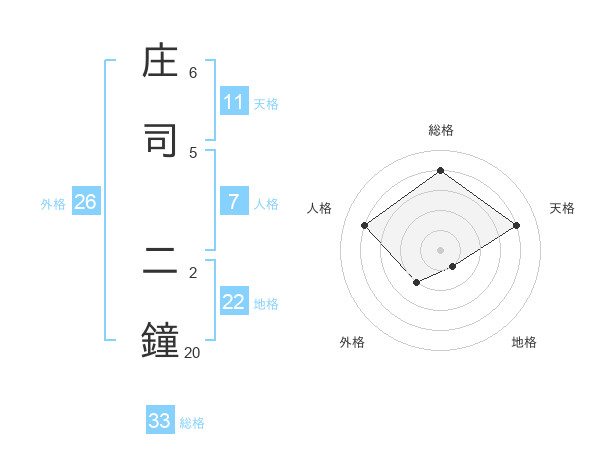 庄司 二鐘さんの総格は33画の4点!
