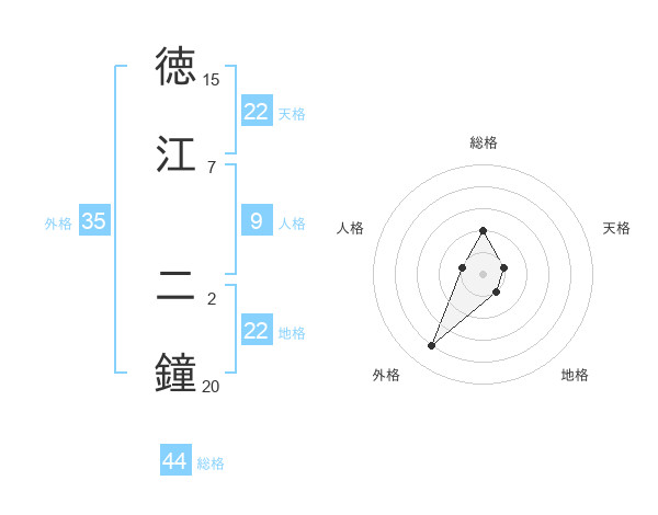 徳江 二鐘さんを姓名の画数から五運を鑑定