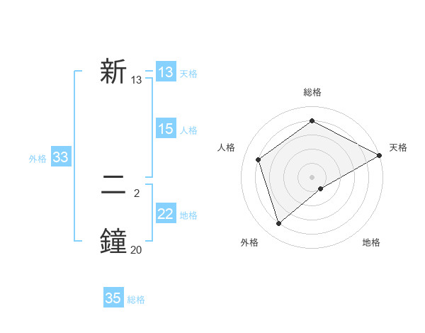 新 二鐘さんの外格は33画の4点!
