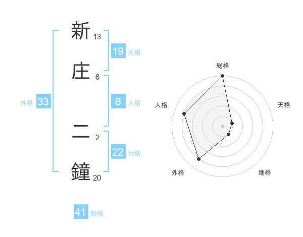 新庄 二鐘さんの総格は41画の5点!