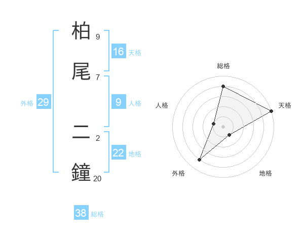柏尾 二鐘さんの総格は38画の4点!