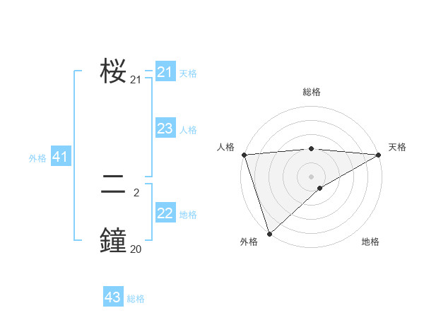 桜 二鐘さんの外格は41画の5点!
