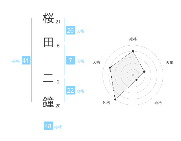 桜田 二鐘さんを姓名の画数から五運を鑑定