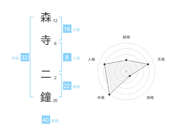 森寺 二鐘さんの総格は40画の2点!